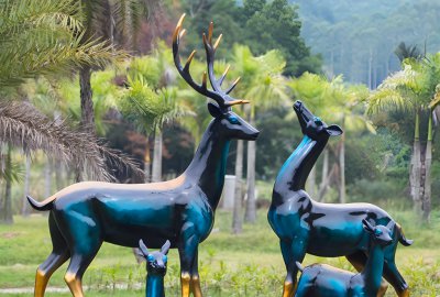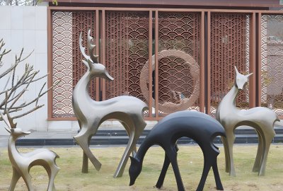 采用不銹鋼材質,通過幾何塊面的設計理念,創造出現代感十足的梅花鹿雕塑擺件。其獨特的造型和金屬光澤,適合放置在現代園林或商業空間,增添藝術氣息。
