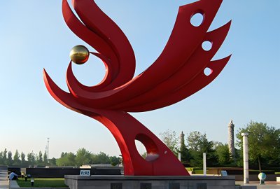這款雕塑以其獨特的抽象設計和鮮艷的色彩吸引眼球。不銹鋼材質保證了其耐久性,而彩繪工藝則賦予了鳳凰雕塑生動的視覺效果。無論是作為戶外裝飾還是室內藝術品,都能為空間增添一抹現代感和藝術氣息。